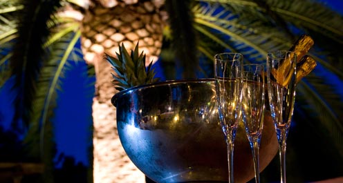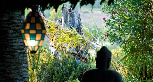 Der attraktive, schön gestaltete Bali-Garten mit seinen Pavillons, geradezu geschaffen für besondere Events, ob es sich um musikalische Veranstaltungen oder Fashion-Events handelt, bietet mit ausgewählten Cocktails auch eine hervorragende Chill-Atmosphäre bevor die langen Nächte in Ibizas Clubs beginnen.